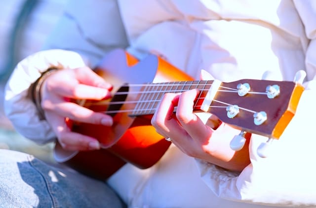 ウクレレは弦が4本と少なく、押さえ方も比較的シンプルです。