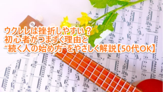 学びウクレレは挫折しやすい?初心者がつまずく理由と“続く人の始め方”をやさしく解説【50代OK】 ウクレレに興味はあるけれど、「続かなかったらどうしよう」と不安に感じていませんか?実は多くの人が同じ悩みを抱えています。本記事では、挫折しやすい原因と続く人の違い、そして失敗しない始め方のポイントを分かりやすく解説します。これから始める方ほど、事前に知っておきたい内容です。 2026.04.14学び